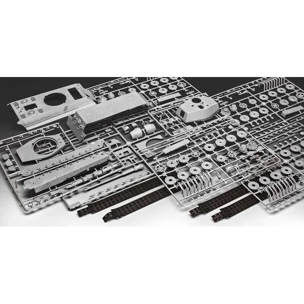 Modèle de tank à coller. Taille : 1:35 ; 29,3 cm. L’emballage contient : 331 pièces à coller, de la colle, un pinceau et des peintures.