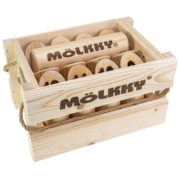 Le Mölkky, dimensions officielles. Caisse de transport en carton.