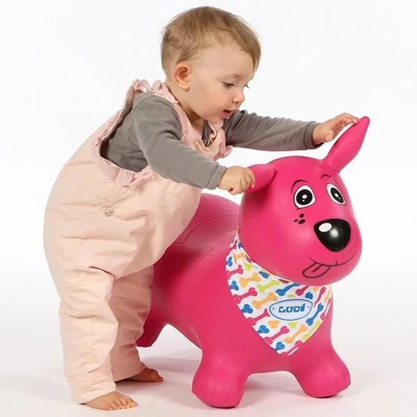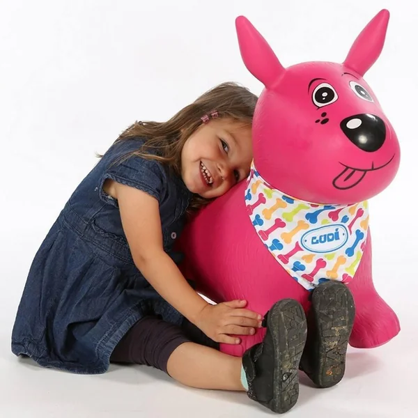 Le chien sauteur est présent aux côtés de l’enfant à différents âges pour des jeux multiples en intérieur comme en extérieur. Pensé pour l’évolution de la motricité de l’enfant, le chien peut aider bébé à se maintenir sur ses jambes, à se déplacer et à stimuler sa dextérité. Ses oreilles ergonomiques permettent une prise en main parfaite à tout âge. Sa texture douce en plastique épais assure une stabilité. Avec son bandana personnalisable, le petit chien attendra sagement qu’on lui donne son nom. Son caractère affectif et ludique en fait le grand copain des petits ! Dimension : 58 x 27 x 48 cm. Chien composé à 100 % de PVC, lavable avec un chiffon humide. Foulard composé à 100 % de polyester, lavable en machine à froid. Un système de gonflage est inclus dans le pack du produit.