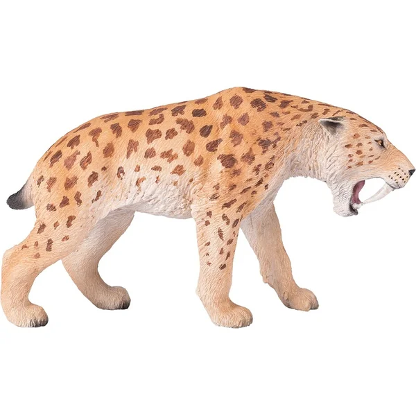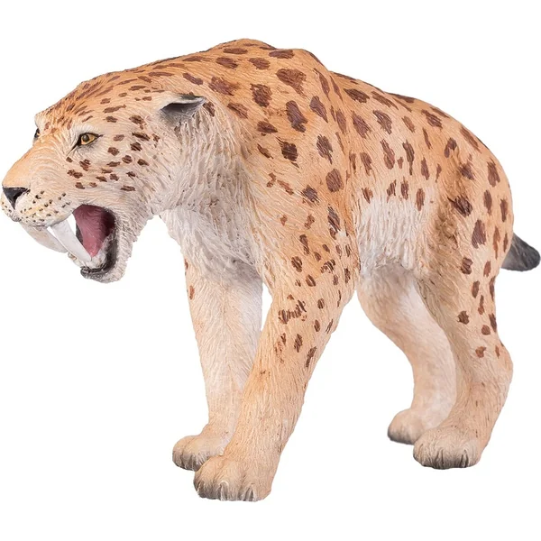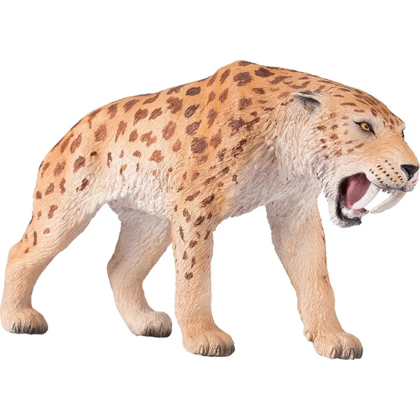 Le Smilodon est un genre de félins éteints, appelés « tigres à dents de sabre ». Son trait distinctif est ses canines extrêmement longues, d’où son nom de « dents de sabre ». Il chassait probablement de nombreuses espèces de gibier, comme les bisons, les chevaux et les jeunes mammouths.