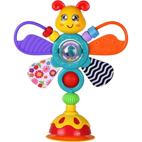 Papillon d’activités se fixant à l’aide d’une ventouse par exemple à une table ou à une chaise-haute. Avec des perles mobiles, des ailes texturées, une balle tournante pour les petites mains. Léger et facile à manipuler. Amusant. Développement de la coordination main-œil. Imaginatif. Bénéfices pour l’enfant : stimulation auditive et visuelle. Des heures d’amusement. Joue et apprends. (Table et chaise haute non fournies). Instructions imprimées sur la boîte.