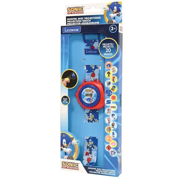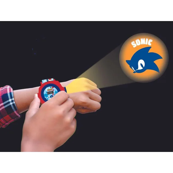 Une montre digitale avec design Sonic ! 20 images de l’univers du jeu vidéo à projeter où tu veux Communique avec tes amis en envoyant des messages codes avec tes projections préférées Bracelet ajustable, convient parfaitement aux petits poignets Anneau rotatif pour choisir l’image à projeter Affichage de l’heure et de la date Piles incluses