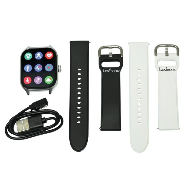 Affichez votre nombre de pas en temps réel en portant la montre intelligente. Vous pouvez également vérifier votre fréquence cardiaque, votre tension artérielle et votre taux d’oxygène dans le sang.Vous pouvez choisir le cadran recommandé, le cadran par défaut ou le cadran de l’album à synchroniser avec la montre.Lorsqu’elle est connectée, la montre vibre lorsque vous recevez un message. Bracelet confortable avec une interface simple pour une utilisation optimale ! Ajustez la taille du poignet pour un confort premium !Équipée d’un moniteur de sommeil pour vérifier la qualité de votre sommeil.Contrôle de la musique : la montre peut contrôler la chanson précédente et la chanson suivante, mettre en pause et démarrer la lecture.Installez l’application sur votre téléphone. Configuration requise : Android 5.0 et plus, iOS9.0 et plus, prise en charge de Bluetooth 4.0.Batterie rechargeable plus, prise en charge de Bluetooth 4.0. Batterie rechargeable