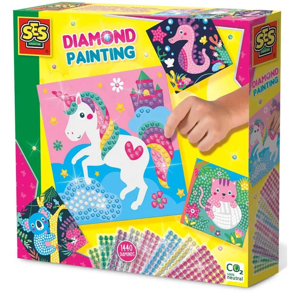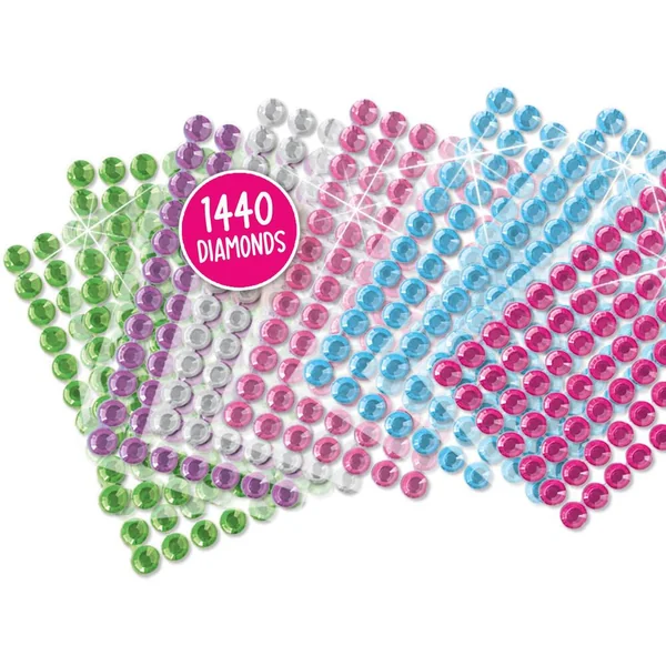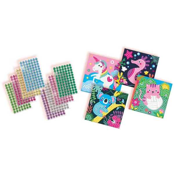 Cette grande carte pour peinture au diamant et sa quantité incroyable de pierres diamantées te permettront de t’amuser pendant des heures. Les diamants étincelants sont autocollants, il est donc facile de les placer sur ces jolies cartes. Décore la licorne, le chat, le koala ou l’hippocampe.