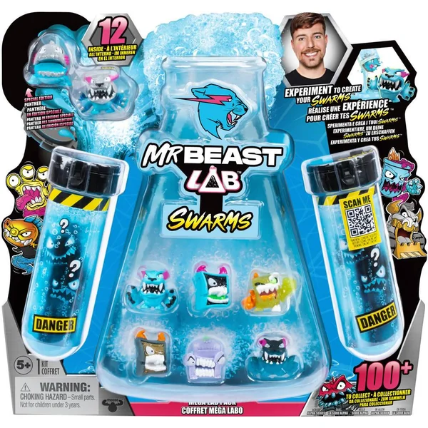 Crée ta horde MrBeast Lab. Chaque coffret renferme 12 créatures, dont l’édition spéciale Hard Head Panther. Mène l’expérience. Verse de l’eau, secoue le tube à essai et surprise : quatre des douze créatures MrBeast Lab Swarms de 2,5 cm apparaissent ! Plus de 100 à collectionner, dont la Hyperchrome Panther en édition limitée (1 000 exemplaires disponibles).