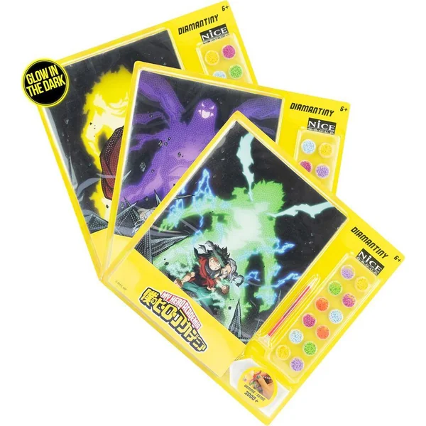 Le paquet unique contient la sélection de pierres précieuses colorées, la tablette A4, un plateau à pierres précieuses, un bloc de cire, un stylo applicateur multifonction original de la marque My Hero Academia.