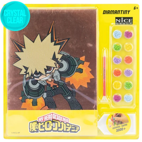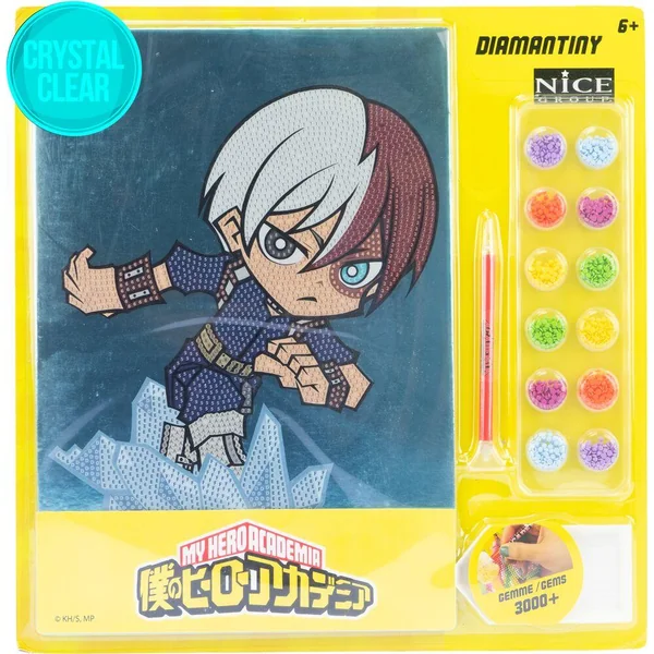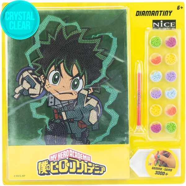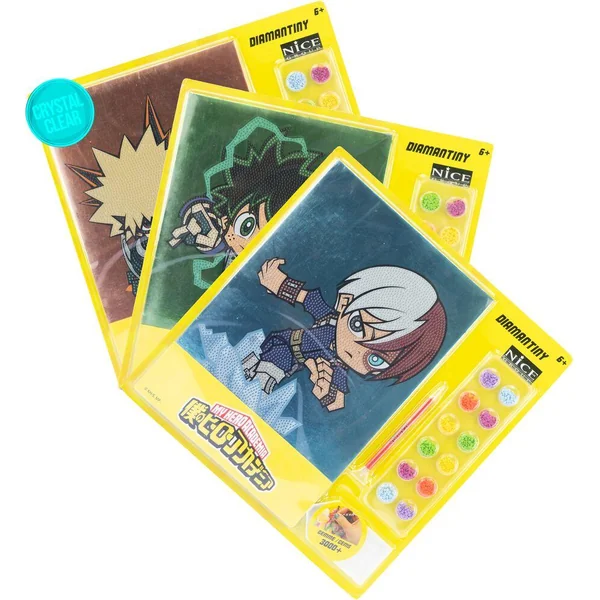 Le paquet unique contient la sélection de pierres précieuses colorées, la tablette A4, un plateau à pierres précieuses, un bloc de cire, un stylo applicateur multifonction original de la marque My Hero Academia.