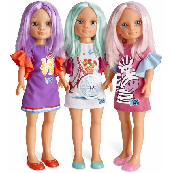 Ta nouvelle poupée Nancy au look en couleurs! Avec ses cheveux et sa tenue colores, Nancy est trop stylée! 3 modèles différents – Taille Nancy : 42 cm –