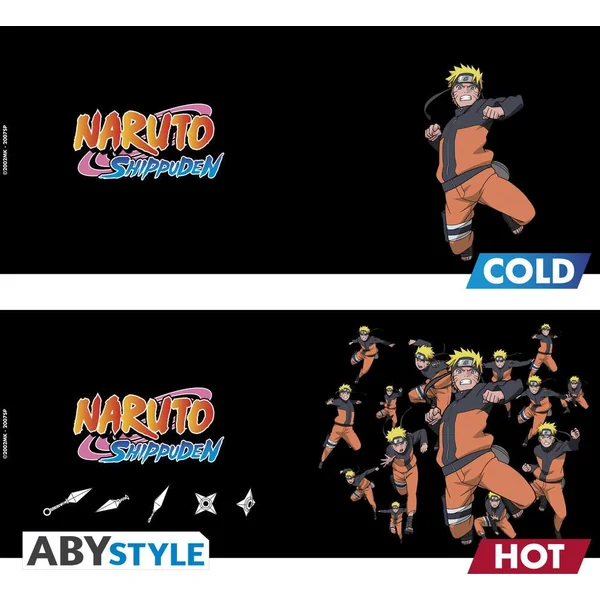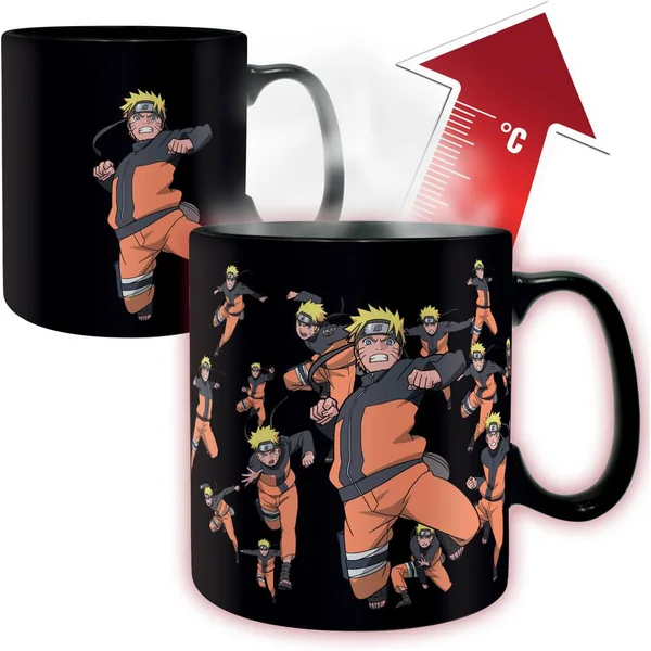 Naruto Shippuden. Découvrez notre gamme de mugs thermo réactifs ! Tous les matins, vous verrez désormais votre mug changer d’apparence lorsque vous ferez couler votre chocolat chaud, votre thé ou votre café. Avec ce mug magique Naruto Shippuden par ABYstyle, Naruto utilise sa technique favorite du multi-clonage et fait apparaître ses clones et ses armes ninja. Change d’aspect lorsque vous versez un liquide chaud. Grande contenance 46 cl (ou 460 ml). Ne passe pas au micro-ondes ou au lave-vaisselle. Matière : en céramique. Ce produit n’est pas un jouet. Dimensions du mug : 13 x 9 x 11 cm.