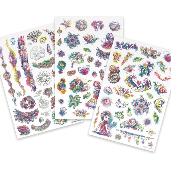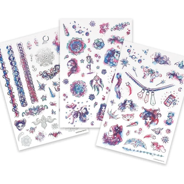 100 tatouages temporaires réalisés à partir d’illustrations originales inspirées de votre personnage préféré.