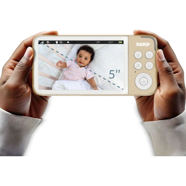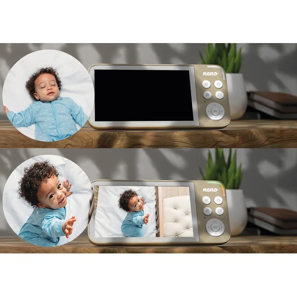 Un maximum de visibilité, de sécurité et de tranquillité dans votre maison. Avec Neno Vedo, vous pouvez garder un œil sur votre bébé de jour comme de nuit. Le mode nuit automatique garantit une image claire et contrastée sans besoin de réglages manuels. Grâce à son grand écran de 5 pouces, vous verrez tout de manière claire et confortable – sans avoir besoin de zoomer.