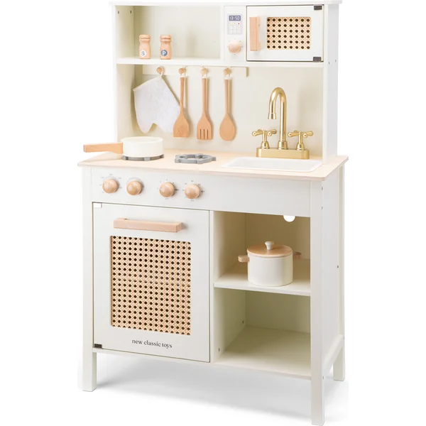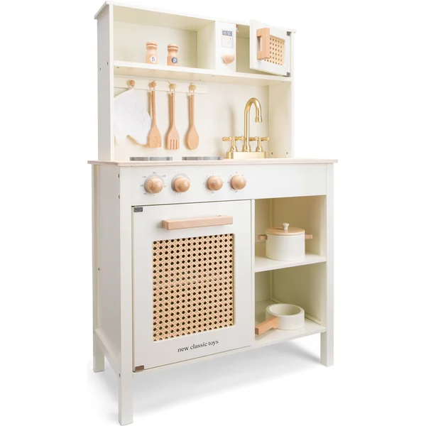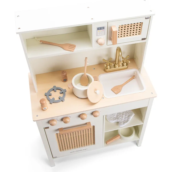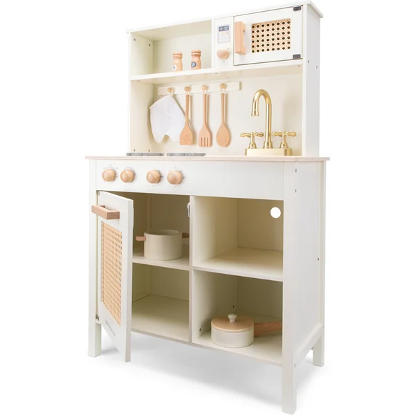 Une cuisine charmante pour les enfants à partir de 3 ans avec des détails en rotin qui ajoutent une touche d’élégance. Idéale pour les petits chefs attirés par l’aventure culinaire.