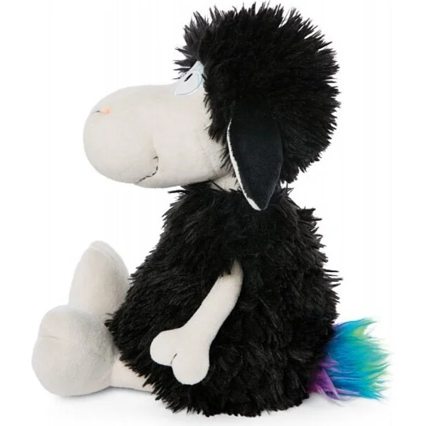Le mouton Jerome est littéralement le mouton noir. Son pelage ébouriffé, ses petites pattes blanches et sa queue colorée rebelle, c’est notre joyeux Jerome.