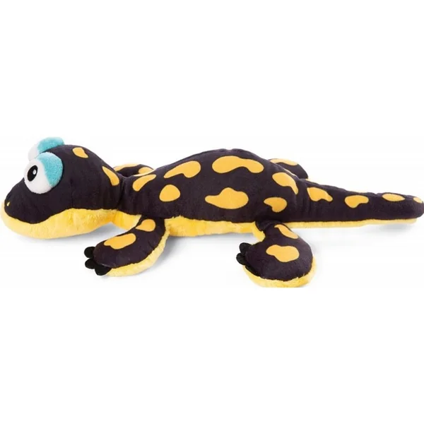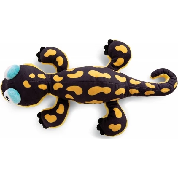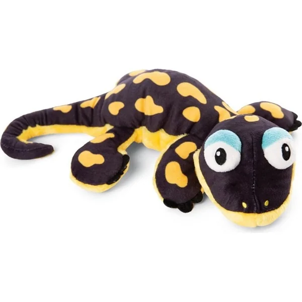 Le salamandre tacheté joyeux Don Fuego avec des yeux brodés. Dans la série GREEN de Nici, des matériaux en peluche et de rembourrage fabriqués à partir de matériaux recyclés sont presque exclusivement utilisés.