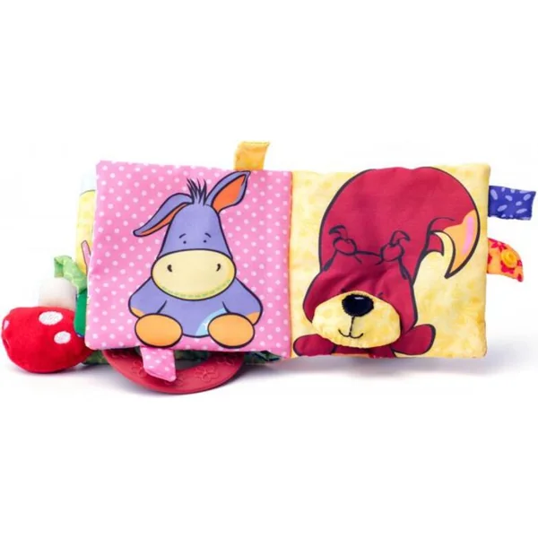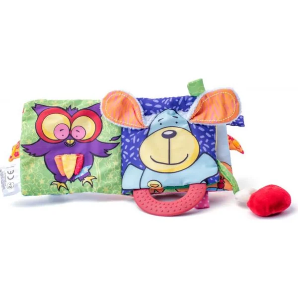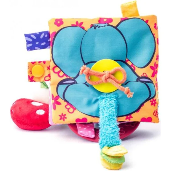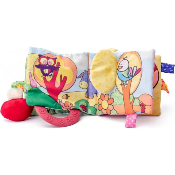 Un joli livre en tissu pour bébés et tout-petits qui stimule les sens du bébé. Il siffle, crisse et sert de hochet.