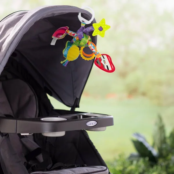 Découvrez cet hochet avec 6 morceaux de tissus aux motifs et couleurs variés, noués par un nœud central. Chaque tissu a sa surprise pour éveiller Bébé : petits bruits de hochet, miroir-découverte, bruissement papier froissé, anneaux Cling-cling… Avec son attache Clip ‘n Go pour accompagner Bébé partout.