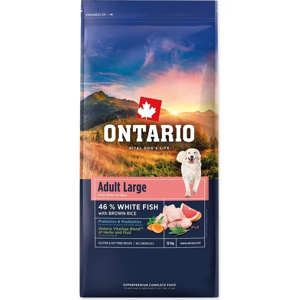 Nourriture Ontario Adult Large Fish & Riz Brun 12kg