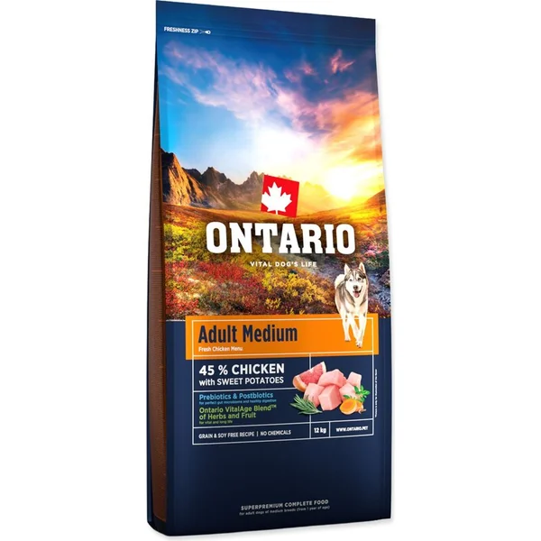 Nourriture Ontario Adult Medium Poulet & Patates Douces 12kg