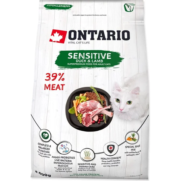 Nourriture Ontario Cat sensitive/Derma 0,4kg