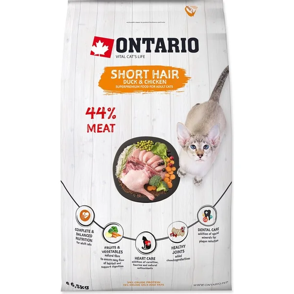 Aliment complet super premium avec une composition spéciale pour les chats adultes à poil court. Formule à faible teneur en céréales. Aliment de haute qualité, super premium pour les chats adultes avec une faible teneur en céréales. Formule spécialement développée pour les chats à poil court. Elle a une composition riche et nutritionnellement équilibrée, qui est un pilier fondamental pour une vie saine et longue. En première position, il y a des sources de protéines de haute qualité provenant de la viande de canard et de poulet, pour garantir encore plus de saveur et de qualité, de la viande de poulet fraîche est ajoutée. Des fruits et légumes séchés soigneusement sélectionnés fournissent les vitamines nécessaires au corps, aident à la digestion et facilitent le passage des bezoards. Mais ce n’est pas tout, la combinaison d’herbes et d’épices aide à protéger les cellules grâce à leurs puissants effets antioxydants et ainsi le corps contre les maladies. L’aliment soutient la santé et le fonctionnement du cœur grâce à la carnitine et à la taurine, prend soin de la santé des articulations en ajoutant des chondroprotecteurs et enfin, s’occupe de la cavité buccale. Composition : viande de canard séchée 15%, viande de poulet fraîche 15%, viande de poulet séchée 12%, graisse de poulet 11%, riz brun 6%, pois décortiqués 10%, pois 10%, protéine de pomme de terre, protéine de poisson hydrolysée 2%, pulpe de betterave, tripolyphosphate de sodium, chicorée séchée (source naturelle de FOS et d’inuline), huile de saumon fraîche, cellulose, carottes séchées, minéraux, pommes séchées, cellulose, MOS (mannanoligosaccharides), canneberges séchées, myrtilles séchées, épinards séchés, brocoli séché, graines de psyllium indien, romarin sp, vigne sp, curcuma sp, agrumes sp, juka schidigera. Composants analytiques : protéines brutes 34%, huiles et graisses brutes 19%, fibres brutes 3,5%, humidité 6%, cendres brutes 7,5%, calcium 1,1%, phosphore 1%. Additifs par 1kg : vitamine A (3a672a) 20 000 UI, vitamine D3 (E671) 1 750 UI, vitamine E (acétate d’alpha-tocophérol) (3a700) 500mg, fer (sulfate ferreux monohydraté) (E1) 70mg, cuivre (sulfate de cuivre pentahydraté) (E4) 10mg, zinc (sulfate de zinc monohydraté) (E6) 100mg, manganèse (oxyde manganique) (E5) 40mg, iode (iodate de calcium) 1,5mg, sélénium (sélénite de sodium) 0,2mg, bentonite-montmorillonite 4 500mg, taurine 1 500mg. Énergie métabolisable : 3 997 kcal/kg. Acides gras oméga 3 0,9%, acides gras oméga 6 3,5%. Santé : Articulations sensibles, Pas de problèmes, Soutien cardiaque, Bezoards, Soutien à la digestion Composition et saveur : Poulet, Légumes séchés, Riz, Canard, Herbes Qualité : ***** Superpremium Poids : 6,5kg ge du chat : Chat adulte
