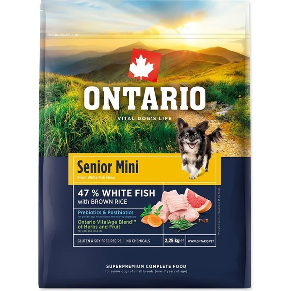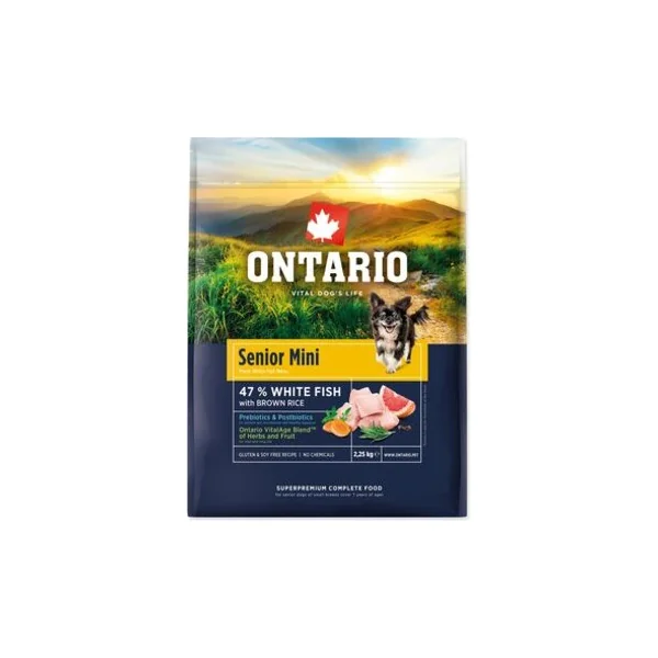 Nourriture Ontario Senior Mini Poisson & Riz Brun 2,25kg