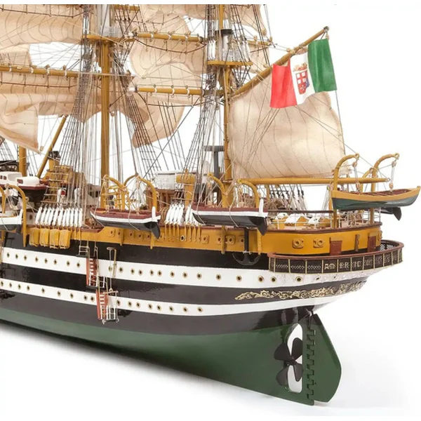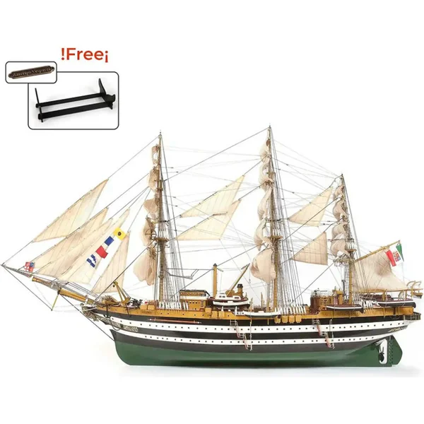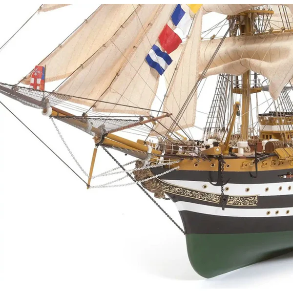 Kit de modélisme d’un modèle de bateau non flottant Amerigo Vespucci avec voiles de la marque OCCRE à l’échelle 1:100. Modèle détaillé de l’un des plus beaux voiliers. Construction principalement en bois, les pièces planes sont découpées au laser avec précision. Le plaquage est double. Un support avec une plaque en métal moulé portant le nom du bateau est inclus pour exposer le modèle. Le modèle comporte de nombreux détails, y compris plusieurs petites embarcations. Différents cordages sont fournis dans l’emballage pour le gréement. Les voiles cousues sont incluses dans le kit. L’avantage de ce kit est son emballage de haute qualité avec des pièces bien protégées, un manuel illustré étape par étape, un ensemble de plans et des tutoriels vidéo.