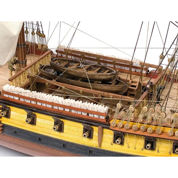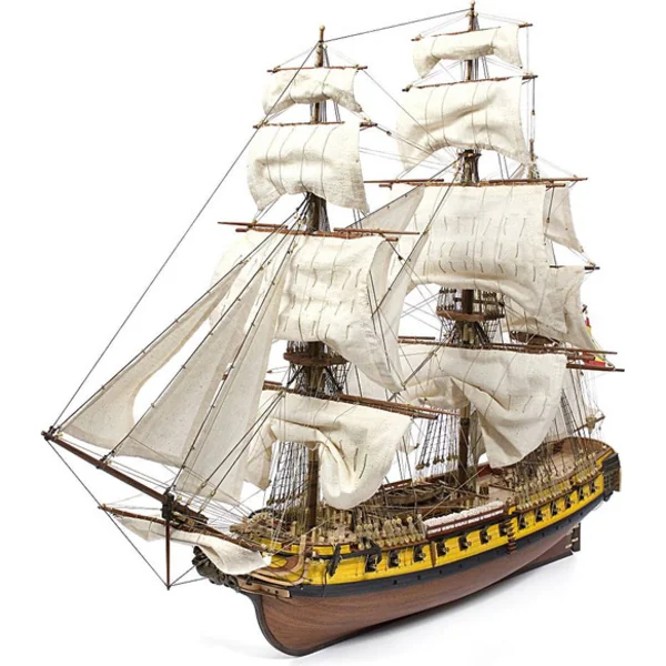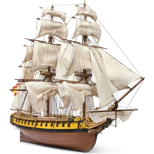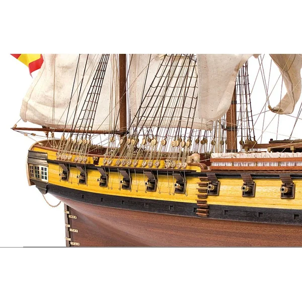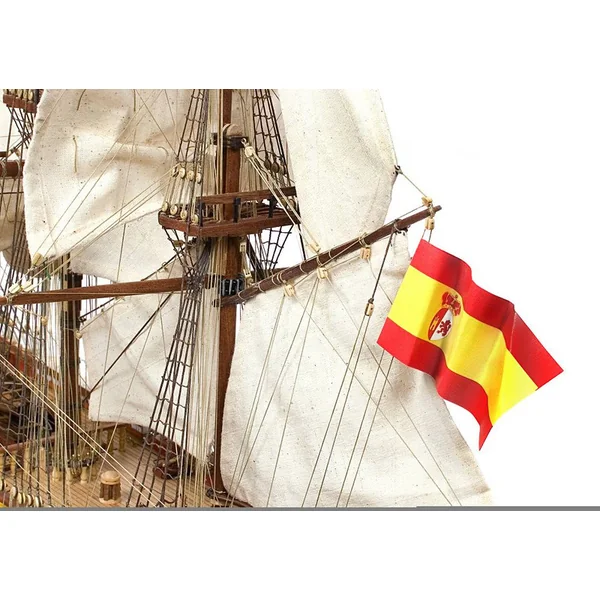 Kit de construction du modèle de bateau non flottant OCCRE N.S. Mercedes frégate, à l’échelle 1:55. Dans l’emballage, il y a des pièces pour la construction + voiles – pièces découpées au laser, baguettes, photodécoupes en laiton, cordages et autres. Plans de construction et instructions.