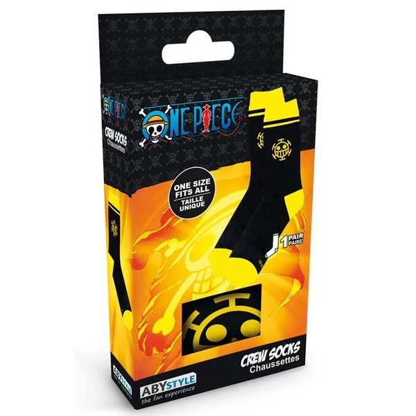 Portez avec fierté les couleurs du Capitaine de l’Équipage du Heart ! Rendez fier le Docteur Trafalgar Law avec ces chaussettes One Piece par ABYstyle !- Matériaux : coton, polyester et élasthane- Une paire- Broderie de haute qualité- Taille unique- Coloris : noir