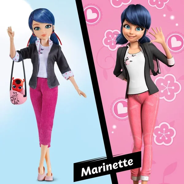 Miraculous: Ladybug et Chat Noir; Poupée Marinette Les élèves de l’école primaire Marinette et Adrien ont été choisis pour sauver Paris ! Leur mission est de chasser les mauvaises créatures – akúmov – qui peuvent transformer n’importe qui en méchant. Ils sauveront Paris et deviendront des super-héros. Marinette est Ladybug et Adrien est Chat Noir.