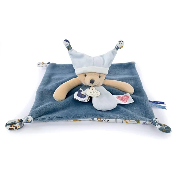 Pour appréhender sereinement le dodo, rien de tel qu’un rituel avec Doudou avant de se coucher. Ce Doudou bleu a la particularité d’avoir un grand bonnet de nuit qui se replie sur ses yeux quand vient l’heure de se dire « Bonne nuit »! Aussi, il est composé d’une étiquette avec un QR code coeur qui permet de flasher une histoire à comter. Grand nombre de détails, étiquettes, nouettes sont à manipuler. Ainsi, il présente les fonctions idéales pour favoriser son endormissement. Grâce à son numéro unique, Doudou perdu est vite retrouvé ! Enregistrez votre Doudou et découvrez toutes les garanties sur le site doudouetcompagnie.com.Ce produit bénéficie de LA GARANTIE DOUDOU. Grâce à son numéro unique, Doudou perdu est vite retrouvé! Enregistrez votre Doudou et découvrez toutes les garanties sur le site doudouetcompagnie.com.