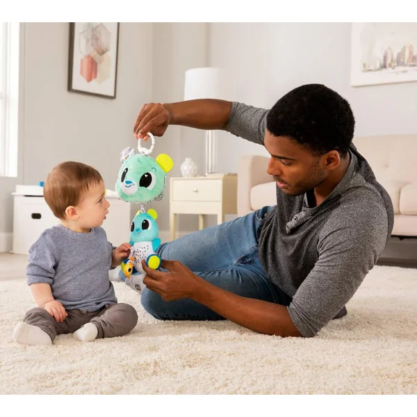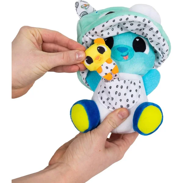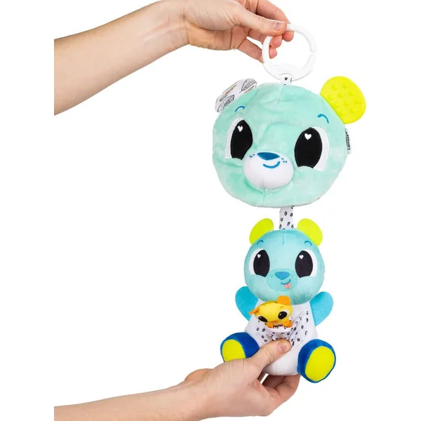 Cet adorable ourson aux différents motifs et textures cache une jolie surprise ! Tirez sur l’anneau de dentition pour faire apparaître les deux petits oursons qui se cachaient en hibernation. Une fois que vous lâchez l’anneau, les oursons disparaissent à nouveau comme par magie ! Un clip & go très doux et amusant qui permet de jouer à coucou-caché. Pratique son clip permet de l’emmener partout !