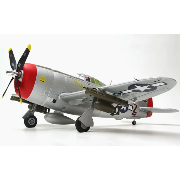 Le P-47 Thunderbolt 980mm est doté d’un train d’atterrissage rétractable et d’une hélice réaliste à quatre pales. Ce modèle réduit est également équipé d’un réservoir de carburant auxiliaire amovible, de bombes et de nacelles de fusée, offrant une expérience de vol authentique. Les lignes de panneaux et les lumières LED ajoutent une touche de réalisme, tandis que la figurine pilote peinte complète l’aspect visuel du modèle.