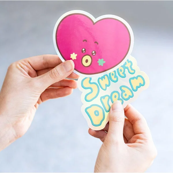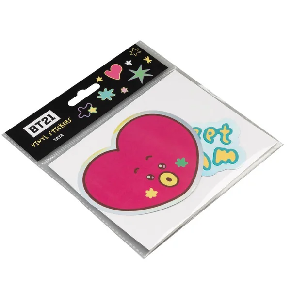 Lot de 2 autocollants en vinyle découpés à l’emporte-pièce pour décorer différentes surfaces. Ils sont présentés dans un sachet en plastique transparent.