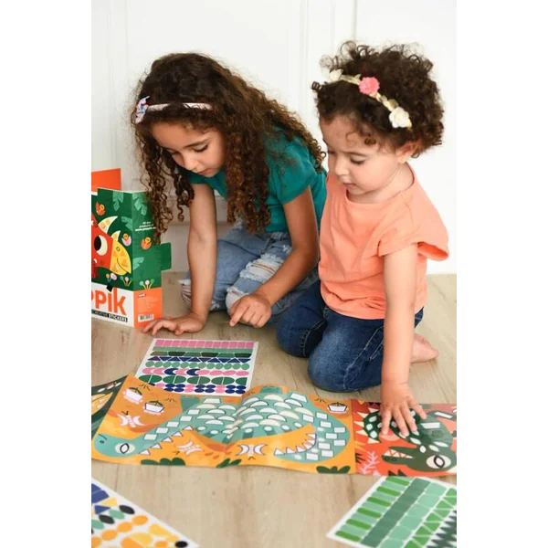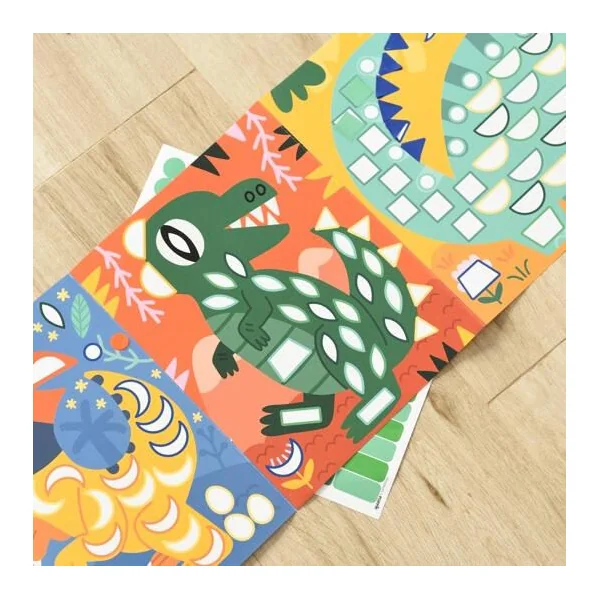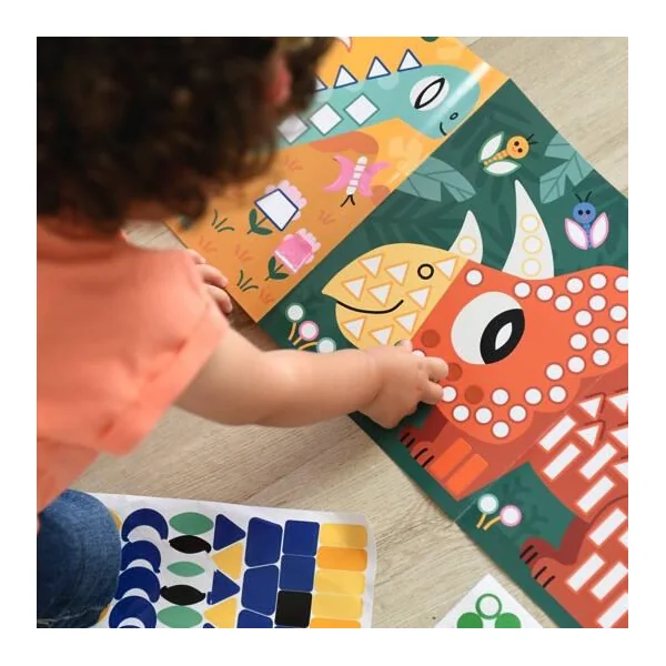 1 Panorama et plus de 500 stickers à compléter avec des gommettes. Favorise la concentration et l’autonomie. Sur le thème des dinosaures.