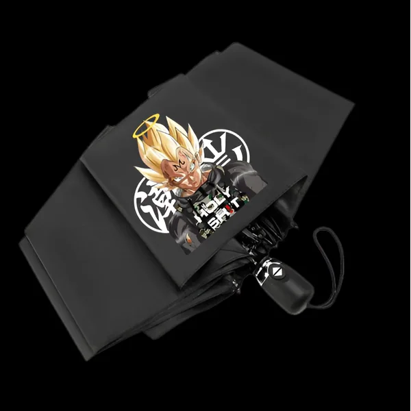 Ce parapluie arbore fièrement une illustration de Vegeta dans un style streetwear moderne et dynamique. Loin des terrains de combat, on découvre le prince des Saiyans dans une posture décontractée, mais toujours empreinte de sa détermination légendaire. Les couleurs vives du logo Dragon Ball Super contrastent avec le fond sombre du parapluie, créant un effet visuel saisissant. Chaque détail a été pensé pour capturer l’essence du personnage, de son expression résolue à sa tenue vestimentaire actuelle. Ce n’est pas simplement un accessoire pour se protéger de la pluie, c’est une véritable déclaration de votre attachement à l’univers de Dragon Ball.