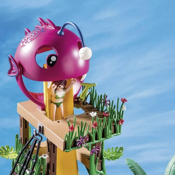 Le parc aquatique, c’est plus amusant parce qu’il y a des toboggans ! Choisissez entre deux toboggans : un long virage ou une descente courte mais raide. La piscine peut être remplie d’eau ! Contient deux personnages. 132 pièces.