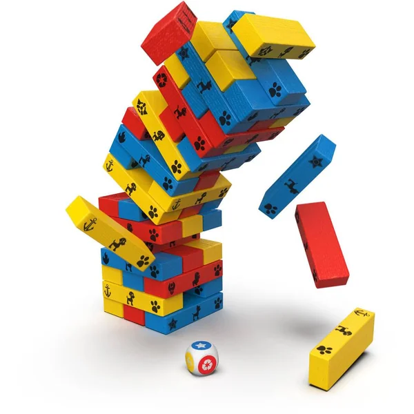 Un grand classique toujours plébiscité par les enfants mais avec une règle du jeu supplémentaire pour plus de fun : le dé décide quelle couleur de bloc il faut enlever à chaque tour. Contient : 48 pièces en bois et un dé spécial. 2 joueurs et plus.