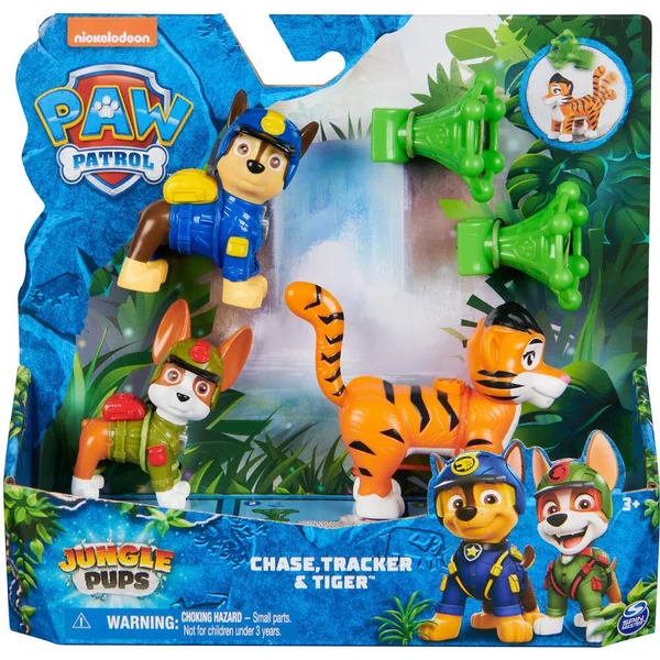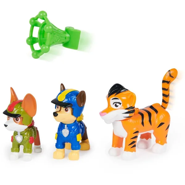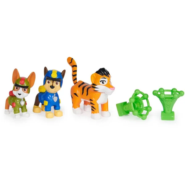 Un coffret comprenant deux figurines de chiot La Pat’ Patrouille Jungle Pups et un animal de la jungle.Pars en mission sauvetage avec la Pat’ Patrouille et leurs amis les animaux de la jungle.Contenu : 2 figurines de chiot, 1 animal et 2 accessoires.
