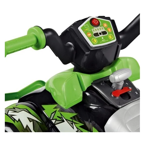 - Autonomie de la batterie : 70 min. (l’autonomie de la batterie est indicative et variera en fonction de l’utilisation du véhicule, du poids de l’enfant et de la surface de conduite. Le temps indiqué est le résultat atteint si la batterie est utilisée à 3/4 de sa capacité sur un terrain plat et compact et à 1/4 de sa capacité sur un terrain irrégulier ou en montée)