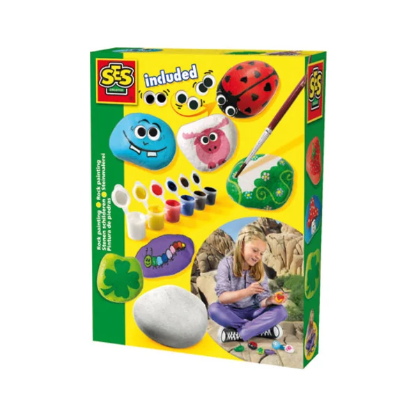 Contient : 5 pierres de différentes formes, une couleur de pinceau et des yeux drôles et tremblants.