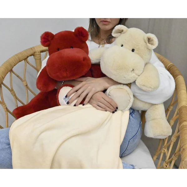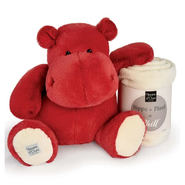Peluche hippo & plaid rouge d’amour.