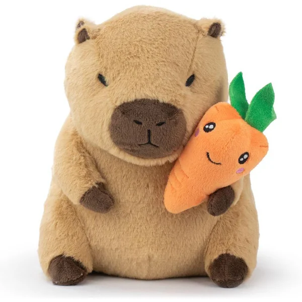 Craquez pour cette peluche capybara ultra mignonne, accompagnée de sa petite carotte souriante ! Avec son toucher tout doux et son look irrésistible, elle fera fondre les cœurs des petits comme des grands. Caractéristiques : Taille : 23 cm Matière : tissu extra-doux de qualité Accessoire inclus : petite carotte kawaii cousue Conforme aux normes CE