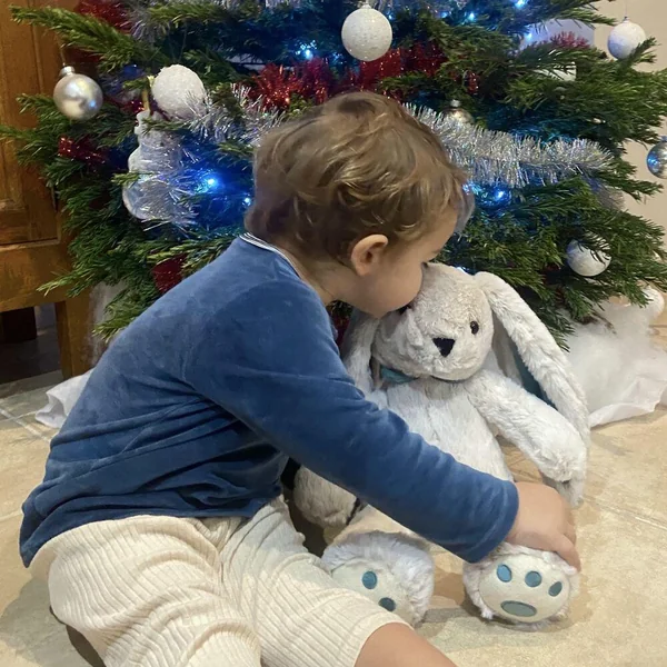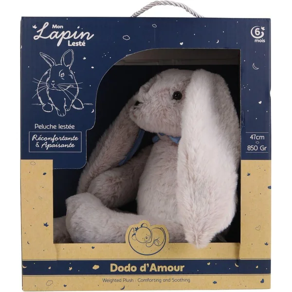 Une peluche lapin lesté de 47cm et 850gr bleue.