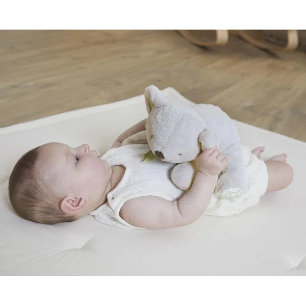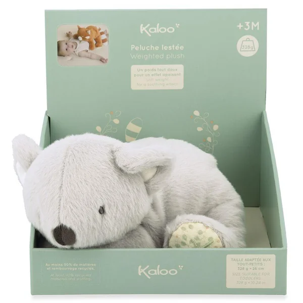 Cette peluche lestée koala est pensée pour accompagner bébé dans son rituel du sommeil. Tendre et rassurante, elle apaise bébé en lui procurant une sensation d’enveloppement grâce à son poids adapté et sécurisé. Son poids équilibré de 328g adapté aux bébés dès 3 mois apporte une sensation de réconfort. Idéale pour transformer le moment du coucher en moment de sérénité. Sa taille de 28 cm et son poil en fourrure garantissent de gros câlins tout doux. Ses formes arrondies permettent une meilleure préhension pour bébé. Cette peluche contient au moins 90% de matières et rembourrage recyclé. Lavable en machine à 30°C.
