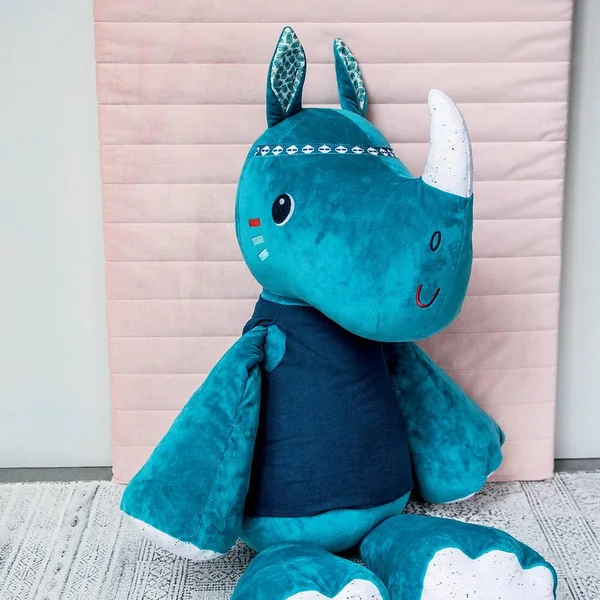 Qui peut résister à Marius, la grande peluche rhino ? Avec ses couleurs magnifiques, il embellira la chambre d’enfant.