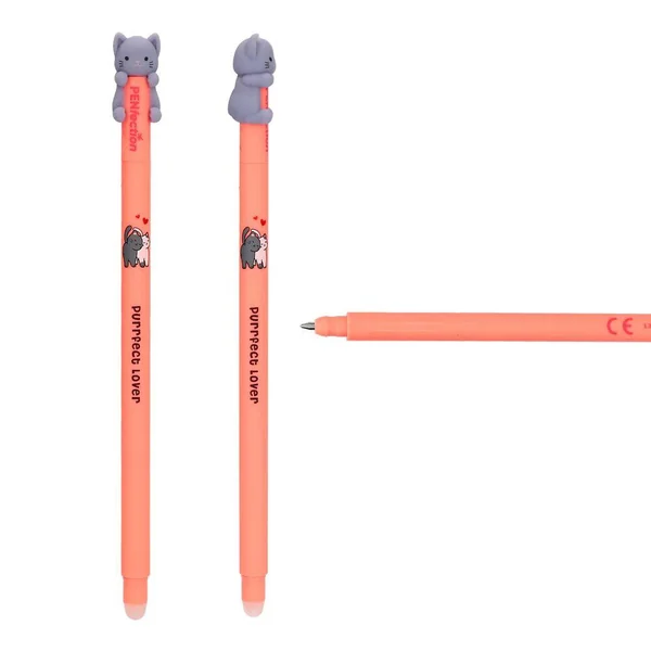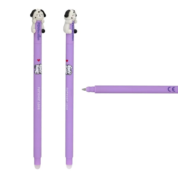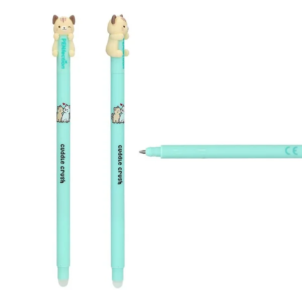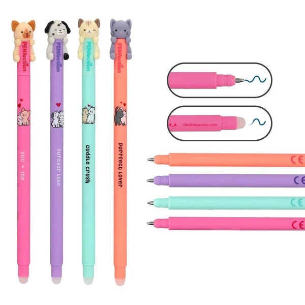 PENfection Stylo gel effaçable HuggyÉcrire en pensant à son animal de compagnie : un chien ou un chat s’est agrippé aux capuchons de ces stylos gel gommables PENfection . À cela s’ajoutent de charmants motifs sur les stylos, disponibles en quatre coloris : rose vif, abricot, vert et violet. L’encre est bleue, l’épaisseur de la mine es de 0,7 millimètre.