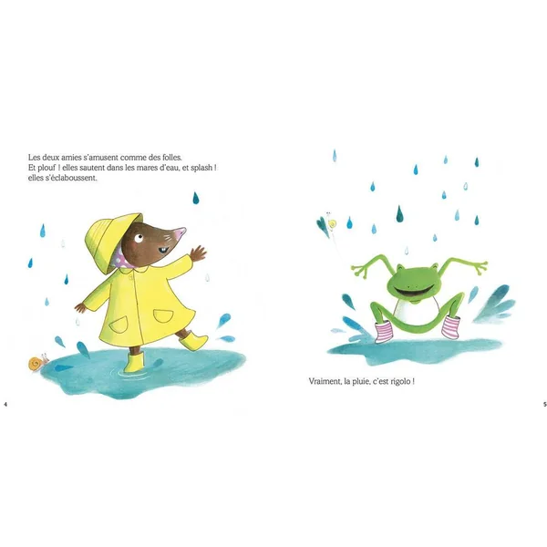 Plic, ploc, il pleut sur la forêt. Dans sa maison, Petite Taupe regarde la pluie tomber. Plic, ploc, la pluie ne s’arrête plus et l’eau commence à rentrer dans les maisons? Petite Taupe décide d’agir pour sauver ses amis !