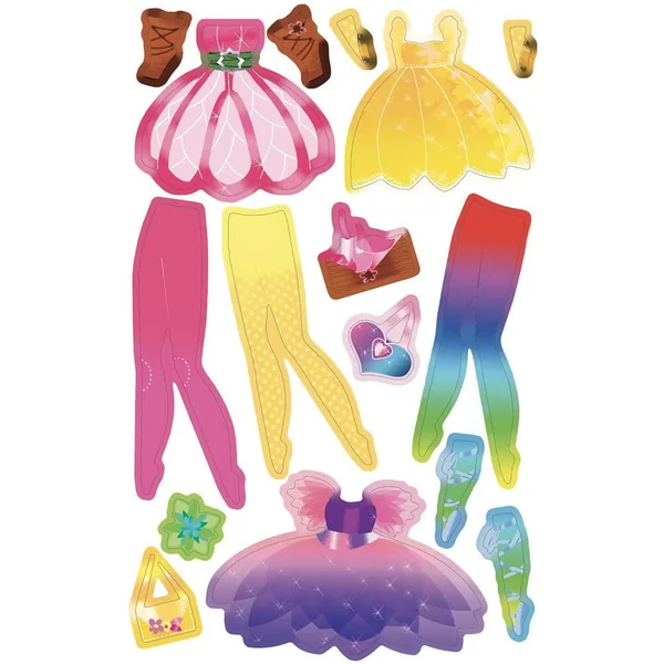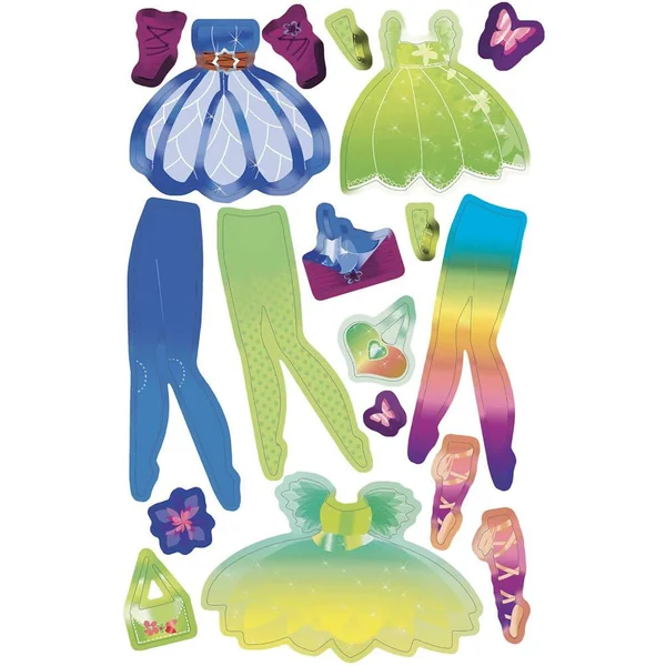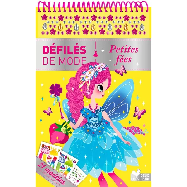 Organise un superbe défilé pour tes fées ! Grâce aux 7 planches d’autocollants pour les tenues (certains sont pailletés ou métallisés) et 1 planche d’autocollants pour les accessoires, habille tes 21 silhouettes. Tu peux détacher proprement tes feuilles, choisir un haut et un bas assortis, compléter la tenue de ton modèle, puis décorer ta création grâce aux strass fournis ! Pour finir, range-la dans la pochette en fin d’ouvrage !