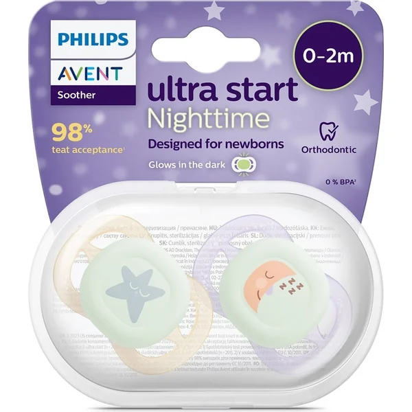 Philips AVENT Sucette Ultrastart nuit 0-2m fille 2 pcs