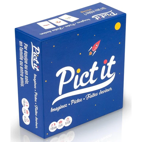 ict it : le jeu d’ambiance à partager sans modération ! Le but : faire deviner ce qu’on a dans la tête avec les cartes picto qu’on a dans les mains. Films, chansons, séries, BD, lieux… tout est permis !